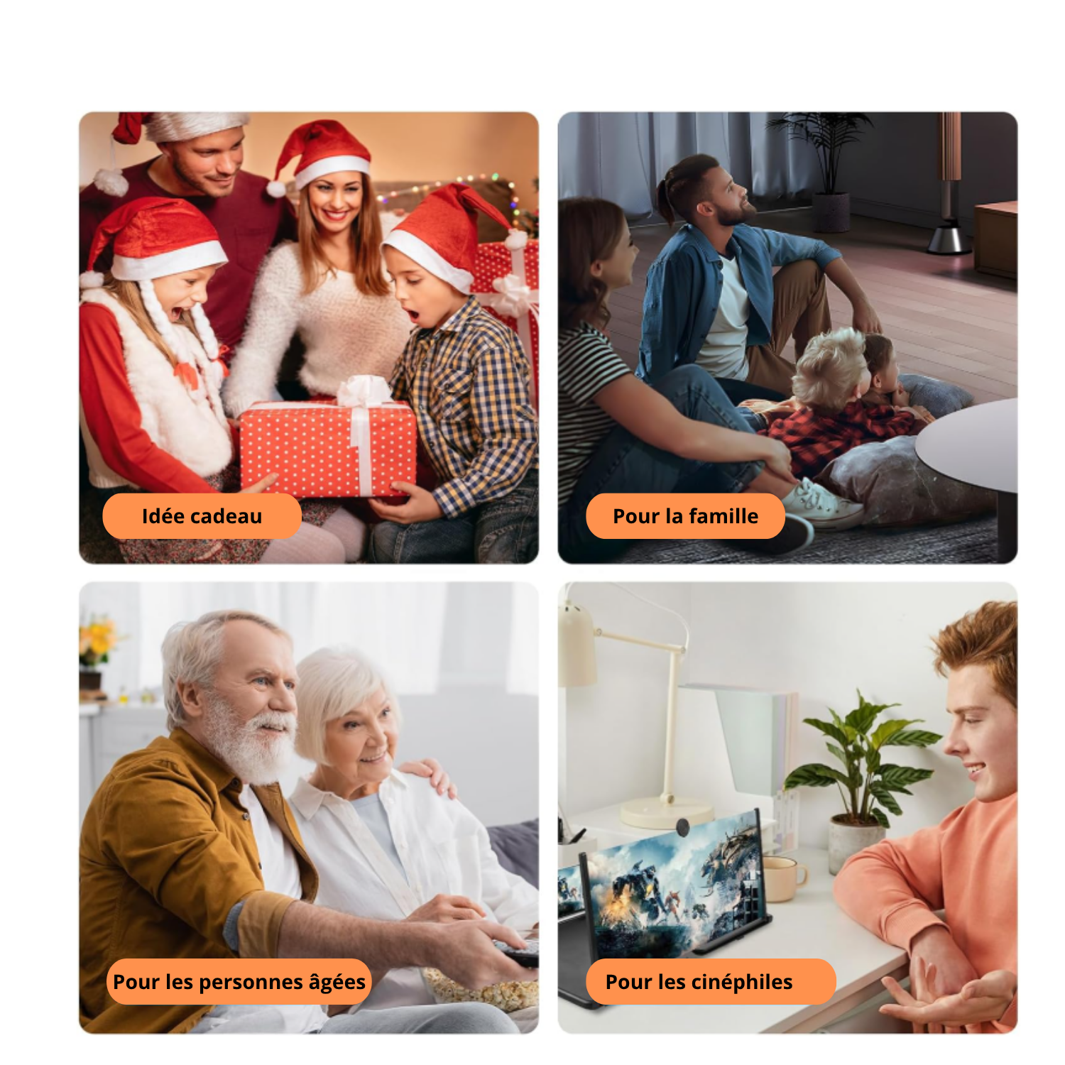 Regardez vos films, séries ou vidéos préférées 3 à 4 fois plus grands grâce à la loupe d'écran HD 18 pouces ! Fini la fatigue oculaire et les petits écrans : profite d'une expérience immersive , où que tu sois.